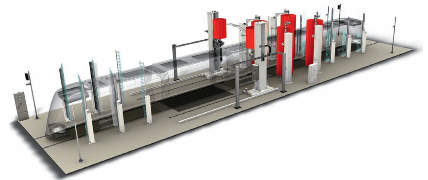 Railgebonden voertuigen zoals trams metro’s en treinen, maar ook trolleybussen hebben behoefte aan gespecialiseerde wasinstallaties.